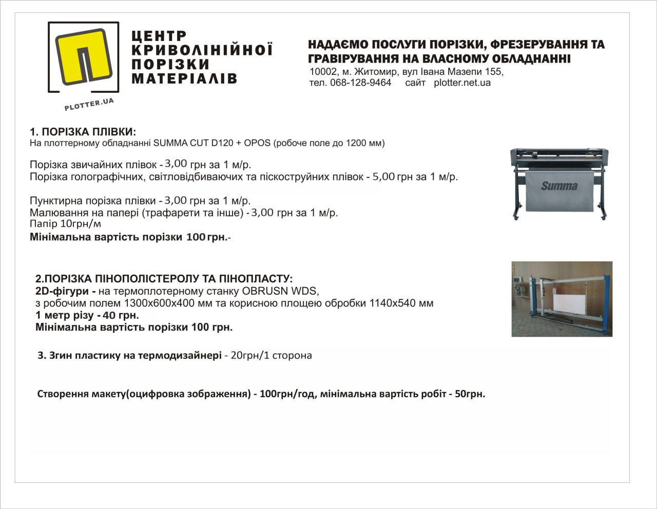 На даному обладнанні можлива порізка плівки любих видів і серій, окрім інженерних світловідбиваючих.